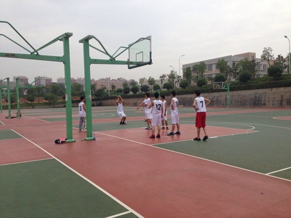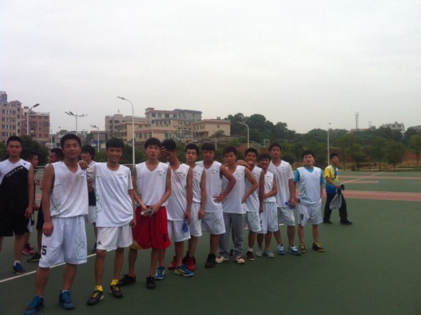 身穿白色球服的建工一班球员与身穿黑色球服的土木三班球员都早早来到了比赛场地,做好赛前热身准备。